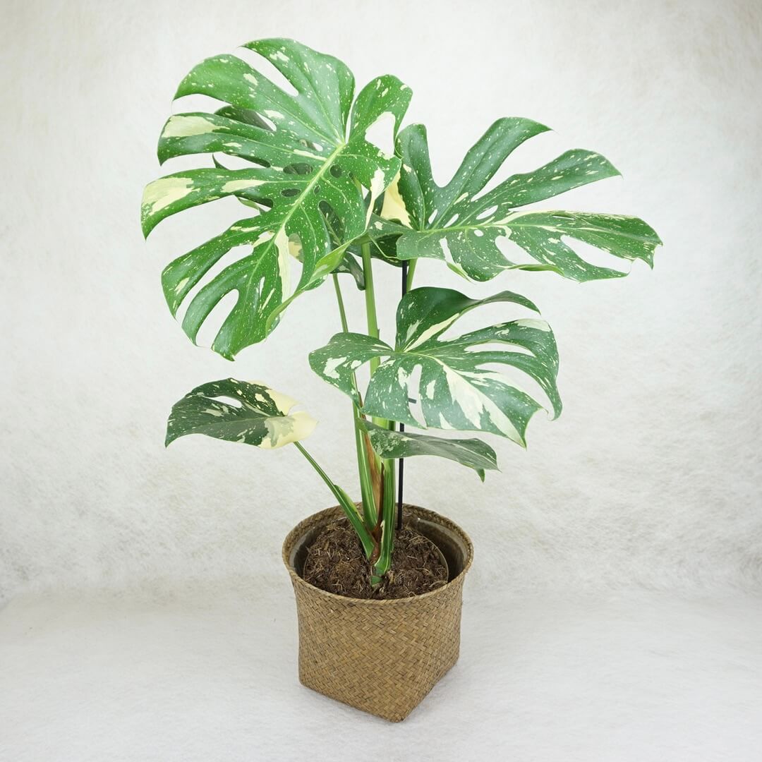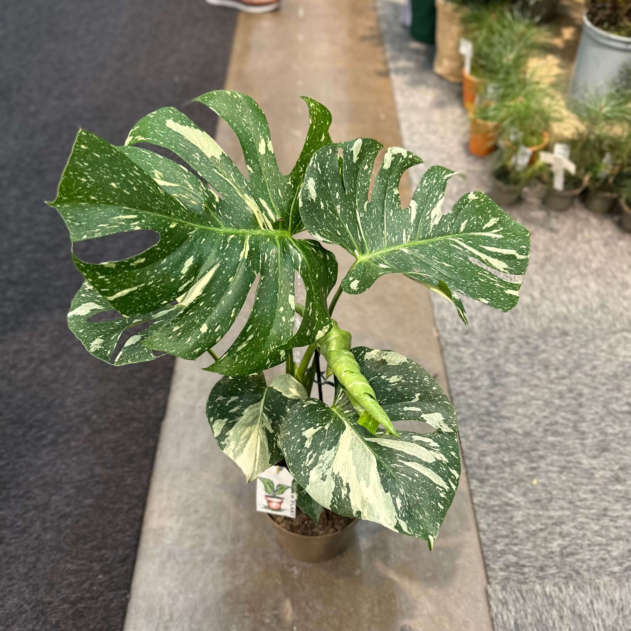 Monstera 'Thai Constellation' Höjd ca 50cm. Krukstorlek: 17cm diameter. Skötselråd: Placeras ljust/i halvskugga. Låt jorden torka upp lätt mellan vattningarna. Var försiktig med att spraya vatten på blad som ej rullat ut sig, detta kan medföra att bladen ruttnar.